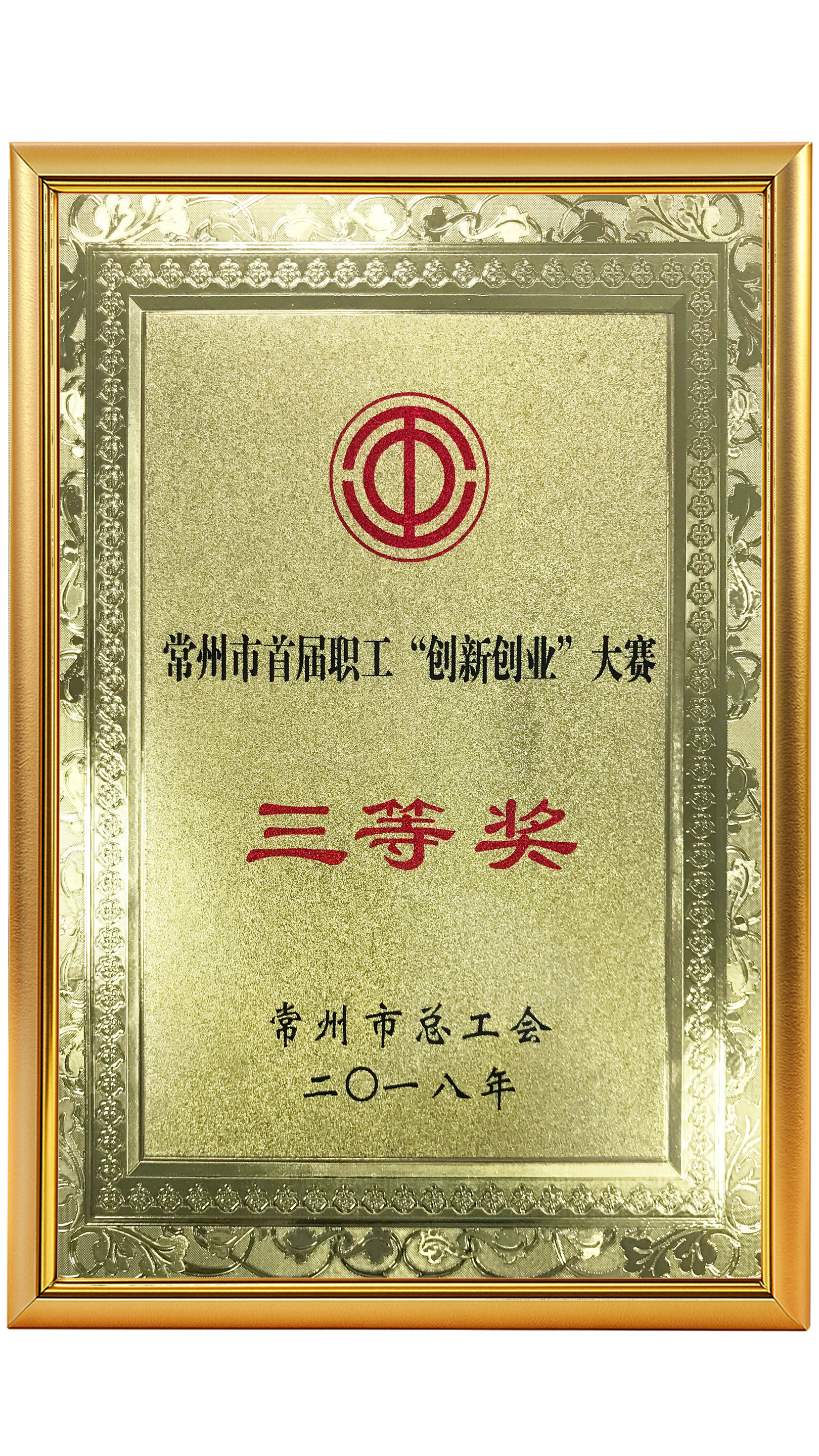 8月:在江苏省常州市天宁区职工创新创业大赛中荣获“一等奖”
